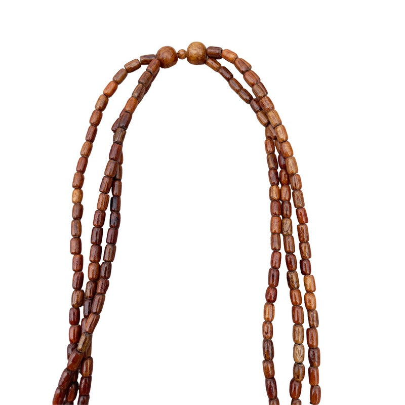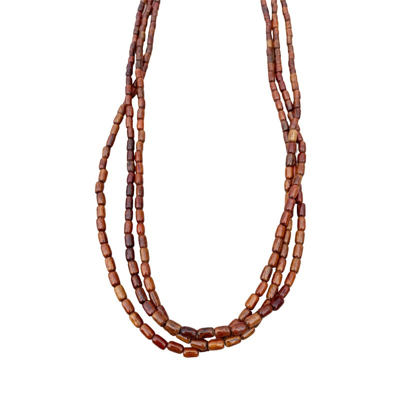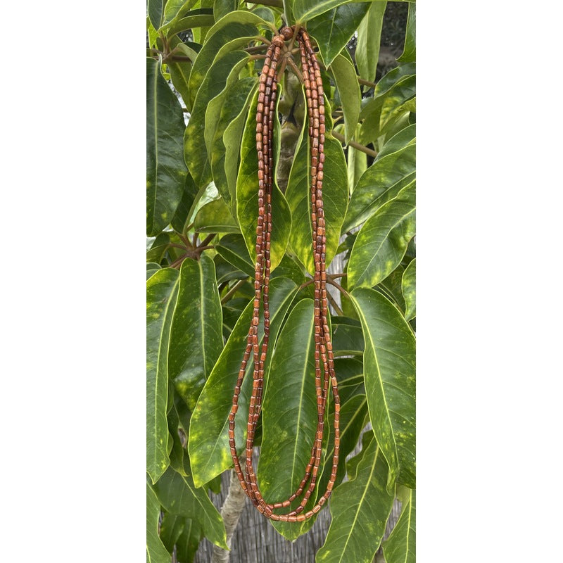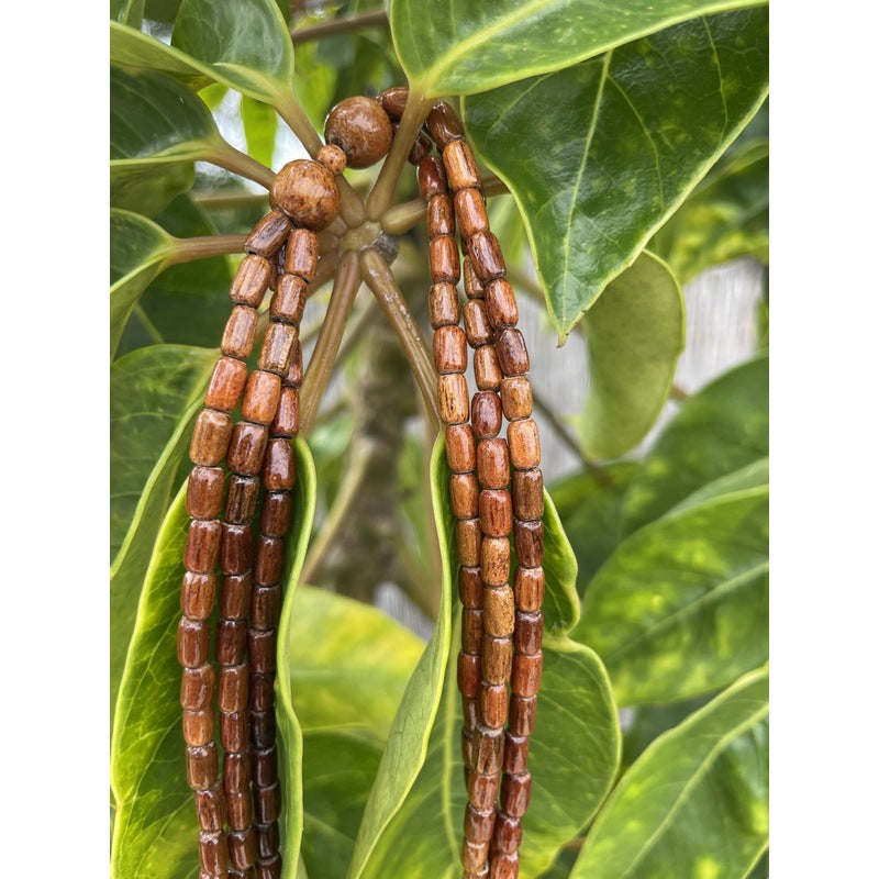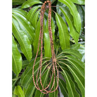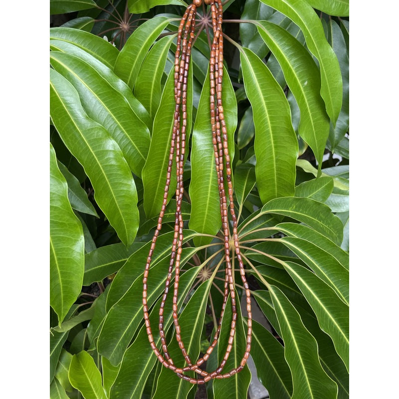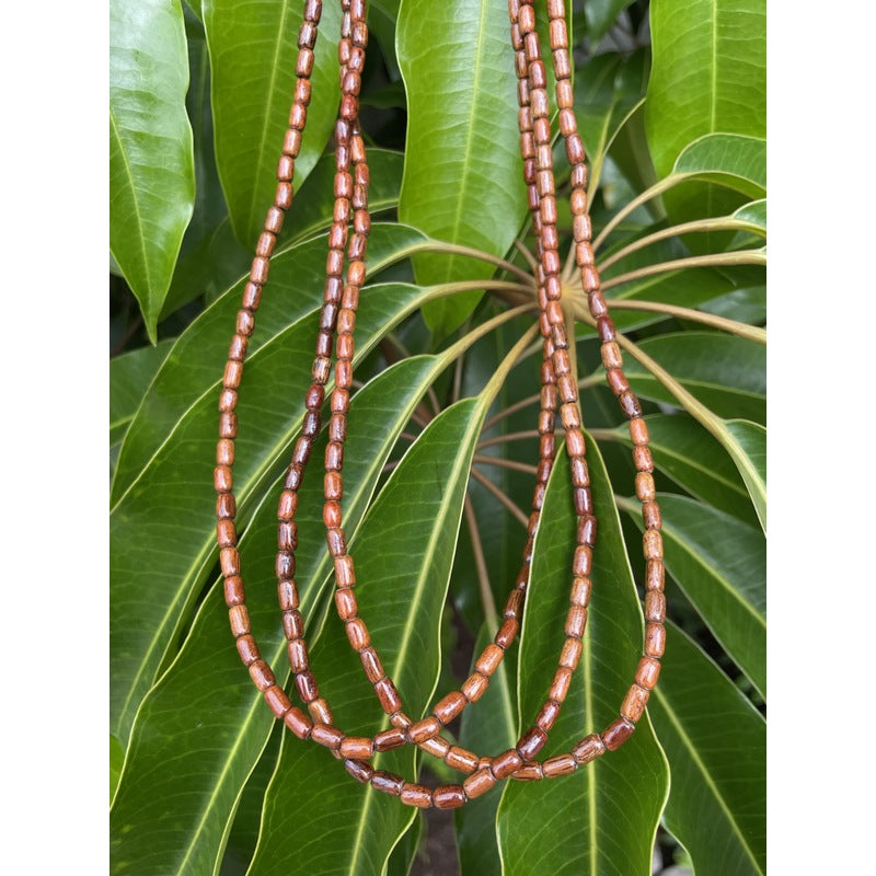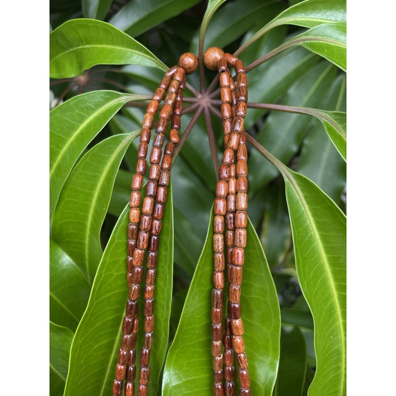 A 3 strand lei of beautiful Koa Rice Beads with clasp closure. This piece is fit for Ali'i (royalty) and designed in Hawai'i with aloha and care. This stunning necklace is 30 inches long and is a Makana Hut favorite since the beginning.