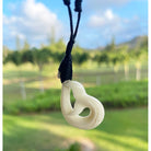 This Bone Hawaiian Makau (Fish Hook Necklace) features a hand carved Whales Tail and engravings. Cord is adjustable to fit all sizes. Hook and necklace are woven together and not detachable.