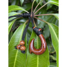 This Hawaiian Koa Makau necklace is handcrafted and features a beautiful design. Made with genuine Koa wood, it comes with an adjustable black nylon cord. The Fish Hook symbolizes strength, prosperity, abundance, and a deep reverence for the sea.