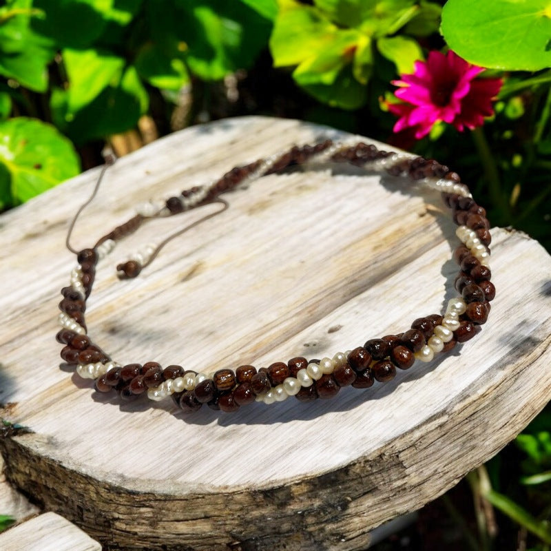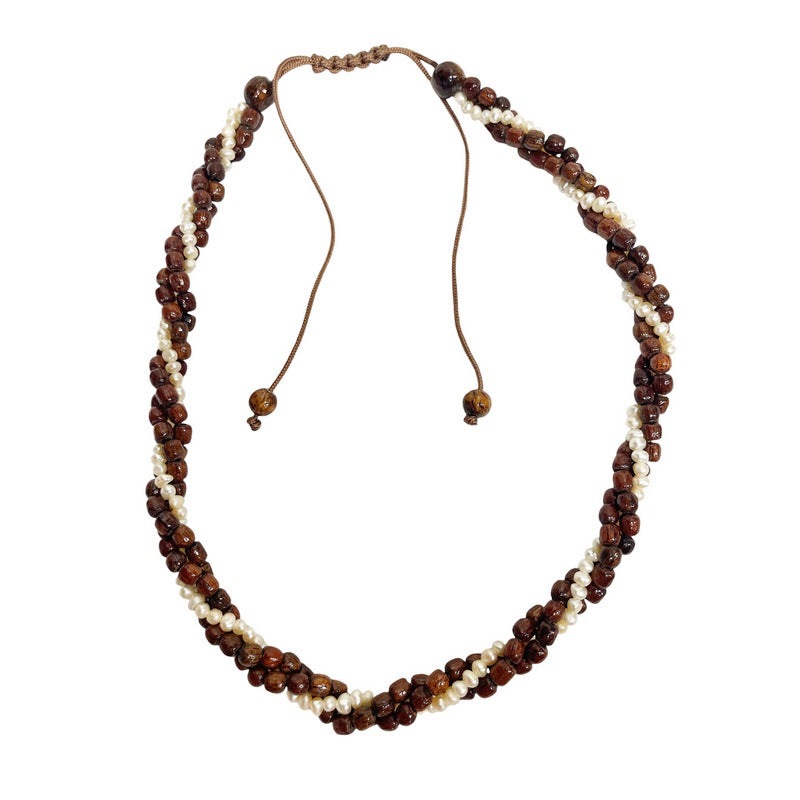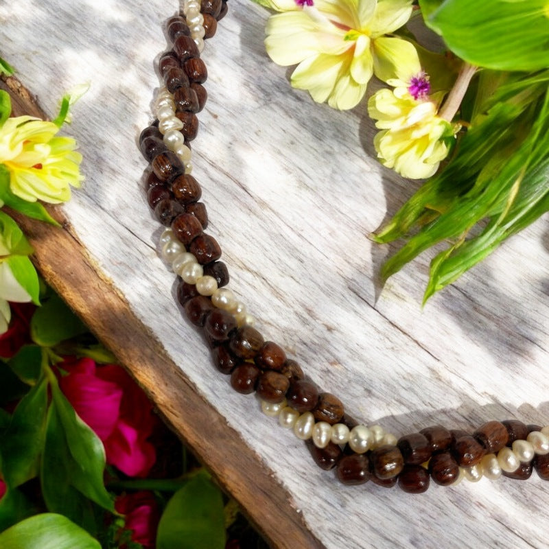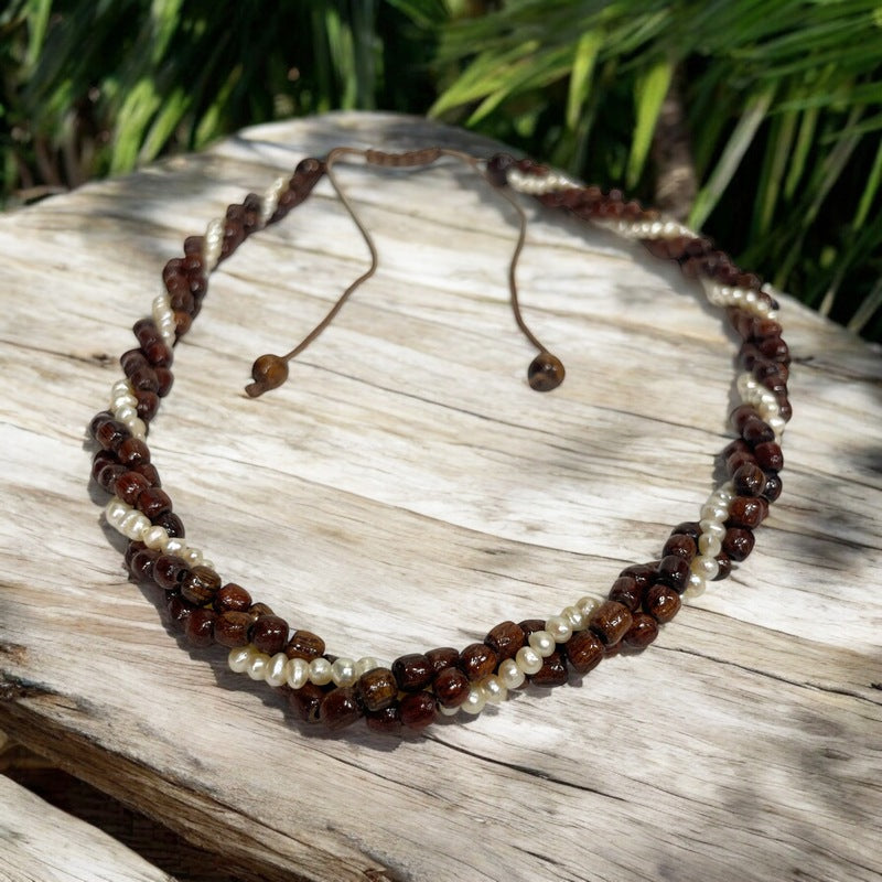 3 Strand Koa Wood Twist with Fresh Water Pearls
