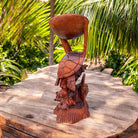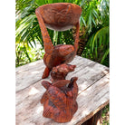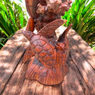 This exquisite sea life carving features three Hawaiian sea turtles, or Honu, deeply respected symbols of longevity, peace, and guidance in Hawaiian culture. Meticulously hand-carved from a single solid piece of monkey pod wood, this artwork also incorporates a decorative bowl, making it both functional and symbolic.