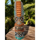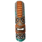 This intricately hand-carved Tiki mask depicts the Hawaiian deity Kanaloa, revered for his associations with hope, faith, freshwater, fishing, ocean, and abundance. At 20 inches high by 5-1/4 inches wide, it makes a striking addition to any island-themed room or office. The mask is meticulously painted and finished, making it a unique and thoughtful gift idea.