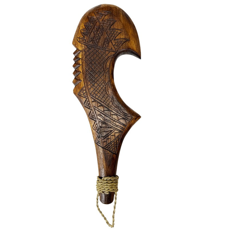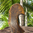 This stunning Polynesian Replica Blade Club showcases the traditional artistry of Polynesian heritage. Expertly crafted from a single piece of wood and finished in a natural tone, this piece features intricate Polynesian carvings throughout, reflecting the rich cultural symbolism of the islands.