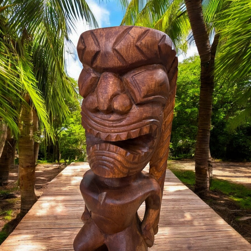 Our selection includes authentic, hand-carved Tiki statues that can be displayed indoors or outdoors. Each piece is meticulously crafted and rich in detail, with a focus on Hawai'i Museum replicas and Polynesian Heritage Tiki Art. Among our hand-carved Tikis are representations of the four Hawaiian Tiki Gods: Ku, Kane, Kanaloa, and Lono. These powerful deities hold great significance in Polynesian culture. Additionally, we offer Kuka'ilimoku, or the personal Tiki God of King Kamehameha.